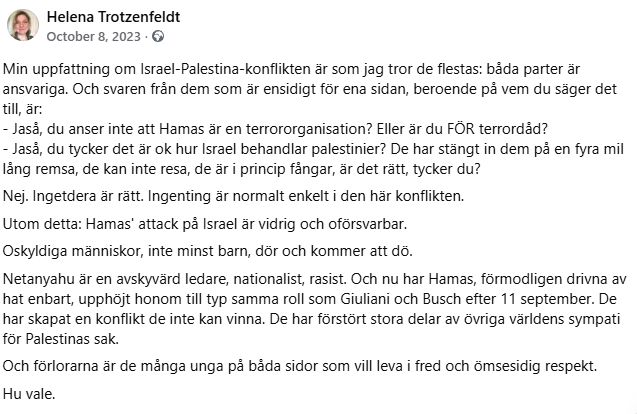 Som jag skrev igår hade jag inte formulerat mig som jag gjorde morgonen den åttonde oktober 2023 idag, se bilden.
