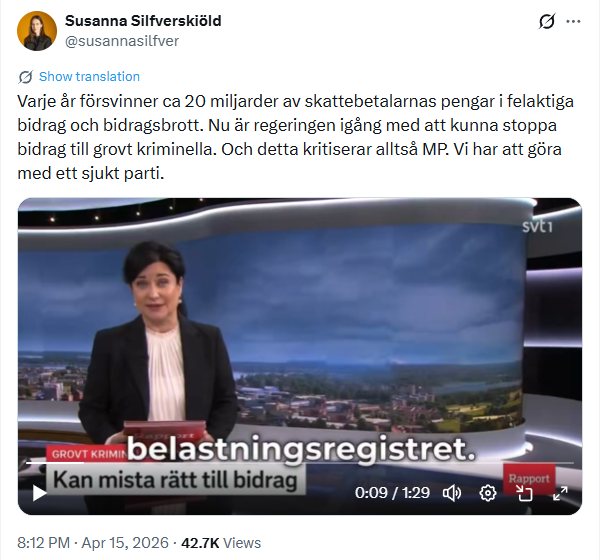 Så om du är gängkriminell och dömd för det sitter du antingen i fängelse eller har sonat ditt brott, uppenbarligen. Och då är alltså tanken att den förälder som inte är brottslig och har hand om barnen bara ska få sin halva av barnbidraget? Jag kan tänka mig att man ger den föräldern rätt att få hela barnbidraget, sure. Men det är inte vad de säger.