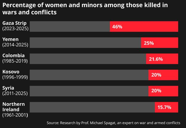 Hind Rajab var 5 år och 8 månader gammal när hon dog. Hennes position på rad 5 918 innebär att 5 917 barn yngre än henne dödades i kriget. Första namnet i tabellen är Waad Sabbah, som dödades sex veckor efter Hind. Hon och 17 andra nyfödda dog inom sina första 24 timmar. Etthundrafemton barn dog innan de fyllde en månad. Totalt 1 054 barn dog före sin första födelsedag.